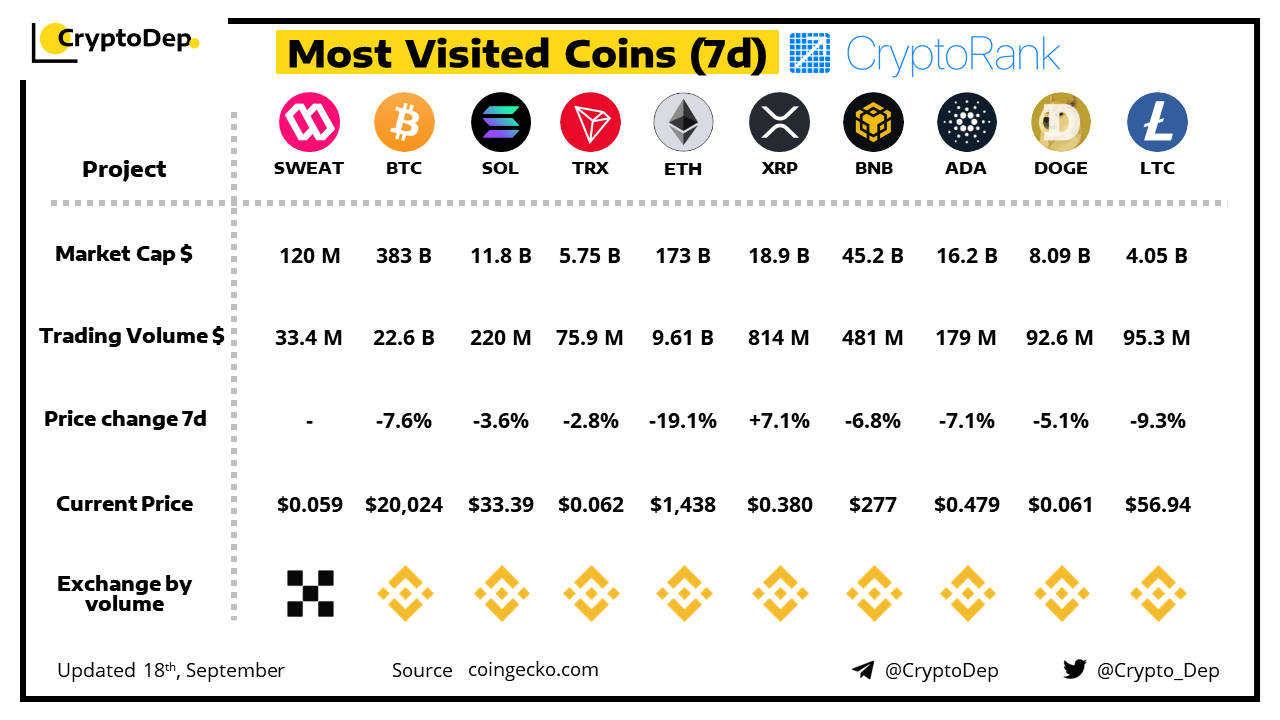 ββMost Visited Coins (7d) by CryptoRank.io