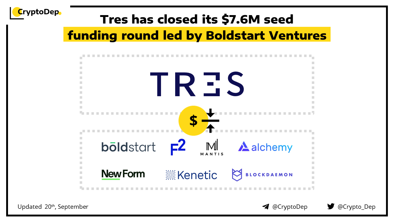 Tres, a financial accounting software startup for web3 companies, has raised $7.6M in the seed funding round led by Boldstart Ventures. Additional round investors F2, Alchemy, New Form, Kenetic Capital, Blockdaemon Ventures, and Mantis. Tres aims to improve the accounting process for web3 firms by collecting and aggregating digital asset data from separate wallets and accounts into its data platform.