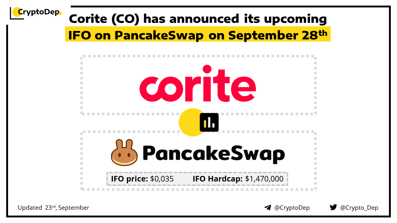 Corite (CO) has announced its upcoming IFO on PancakeSwap on September 28th