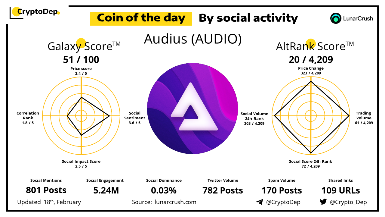 ββCoin of the day by social activity - Audius (AUDIO).