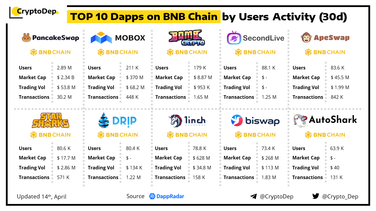 ββTOP 10 Dapps on BNB Chain by Users Activity (30d)