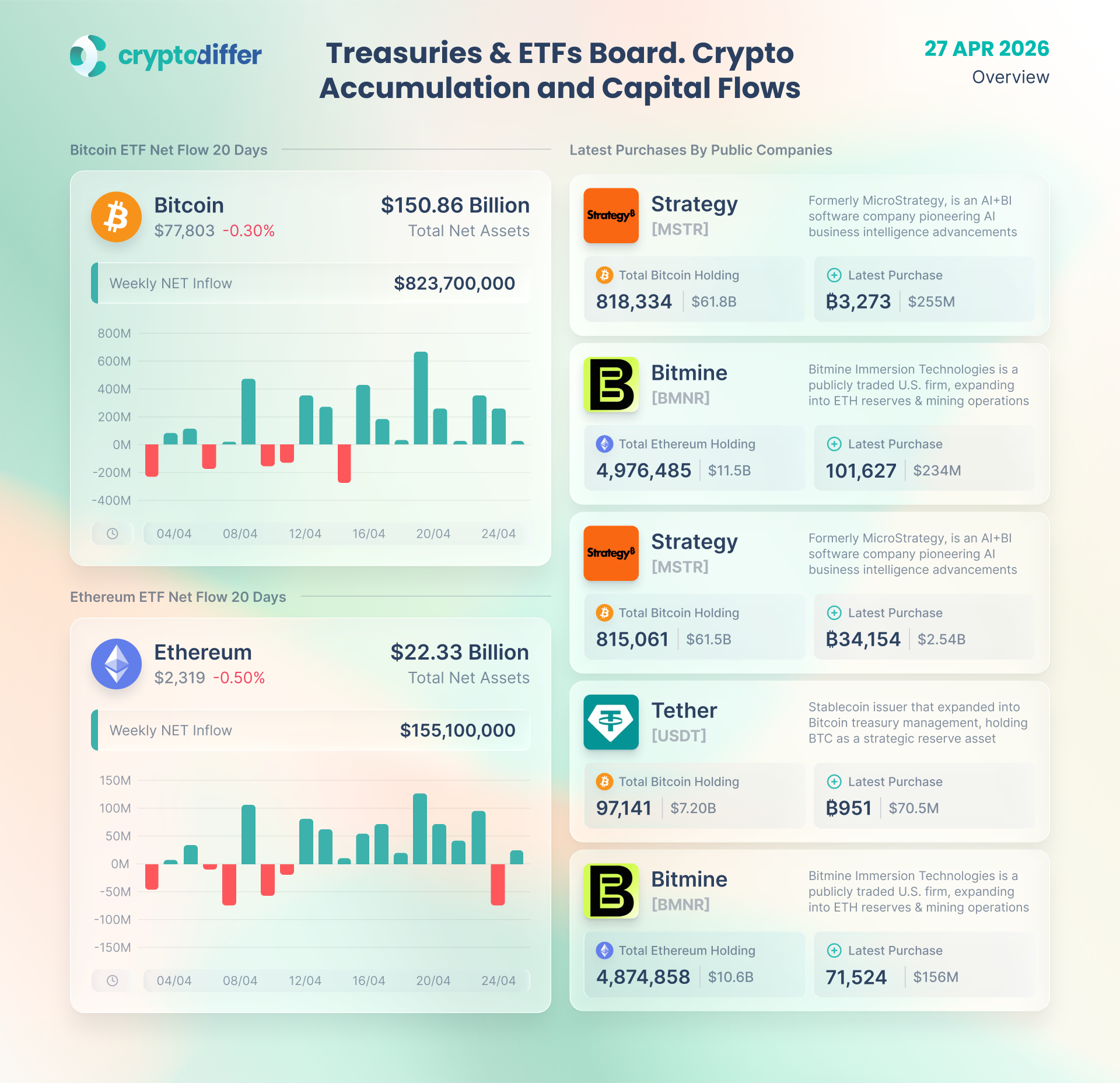– GSR launched a multi-asset ETF covering BTC, ETH, and SOL, enabling active institutional crypto exposure