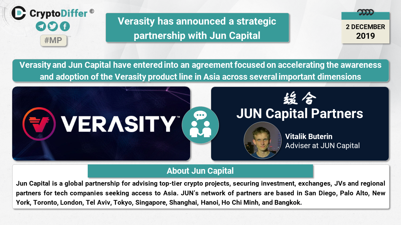 โโVerasity has announced a strategic partnership with Jun Capital to accelerate the awareness and adoption of the Verasity product line in Asia across several important dimensions!