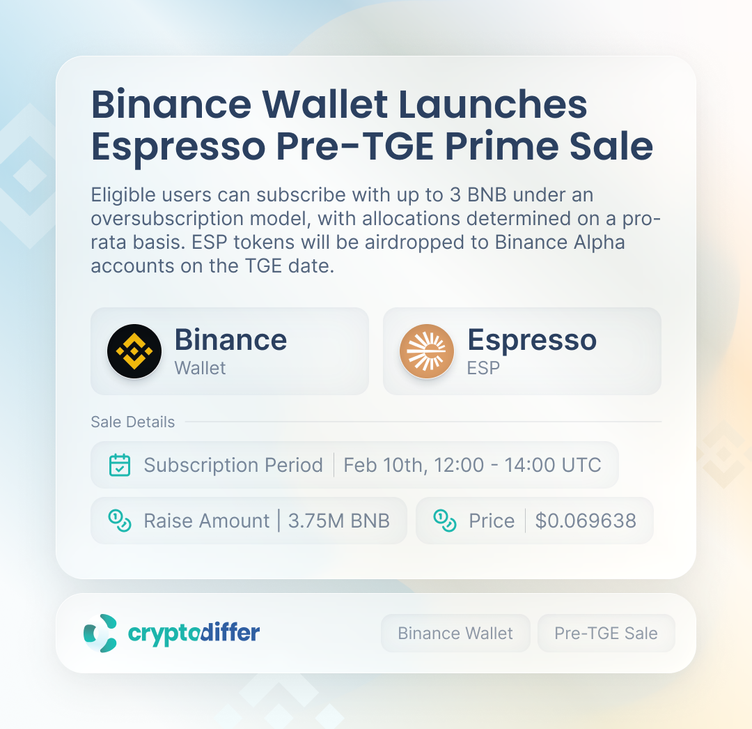 โโBinance Wallet Launches Espresso Pre-TGE Prime Sale