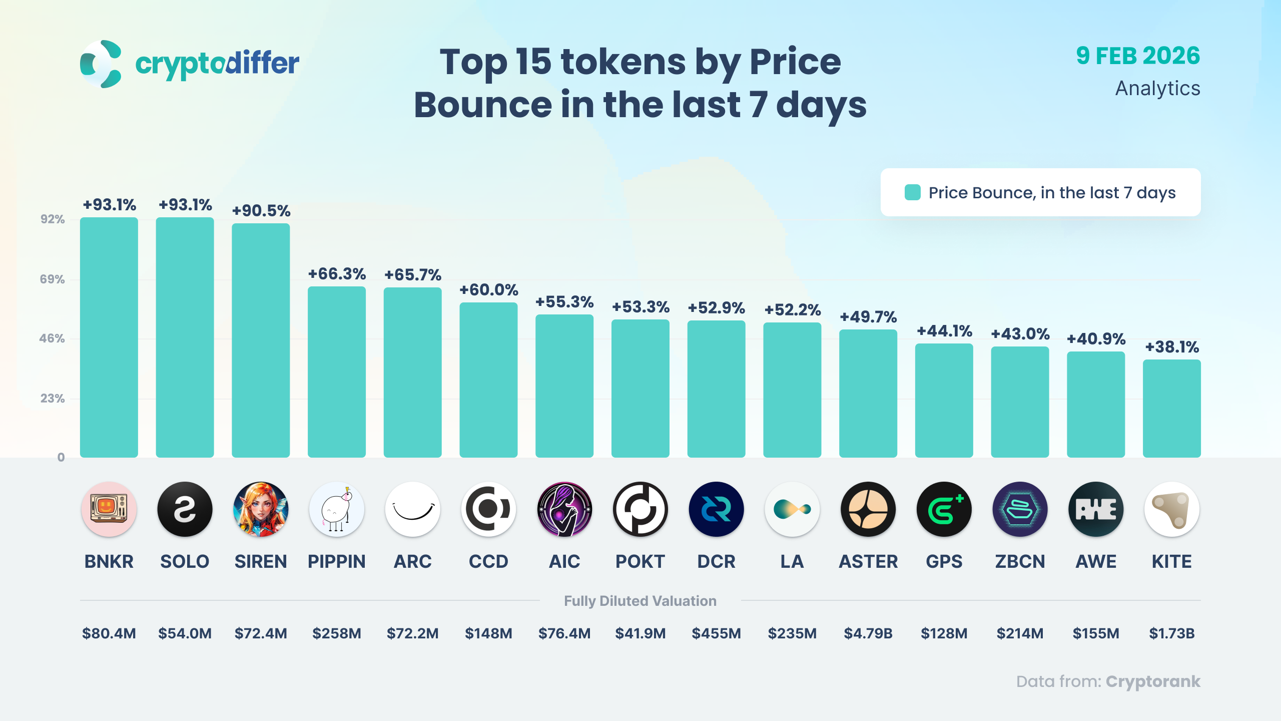 After recent pullbacks, these tokens bounced back the hardest. A look at the top 15 price recoveries over the past week.