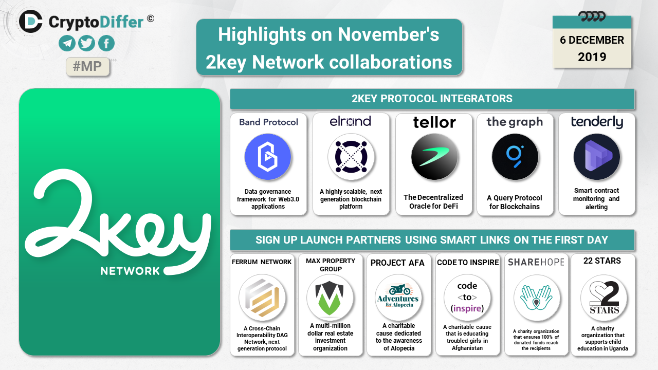 2key Network has introduced the list of major integrators of 2key Network: Elrond, Band Protocol, Tellor, The Graph and Tenderly.