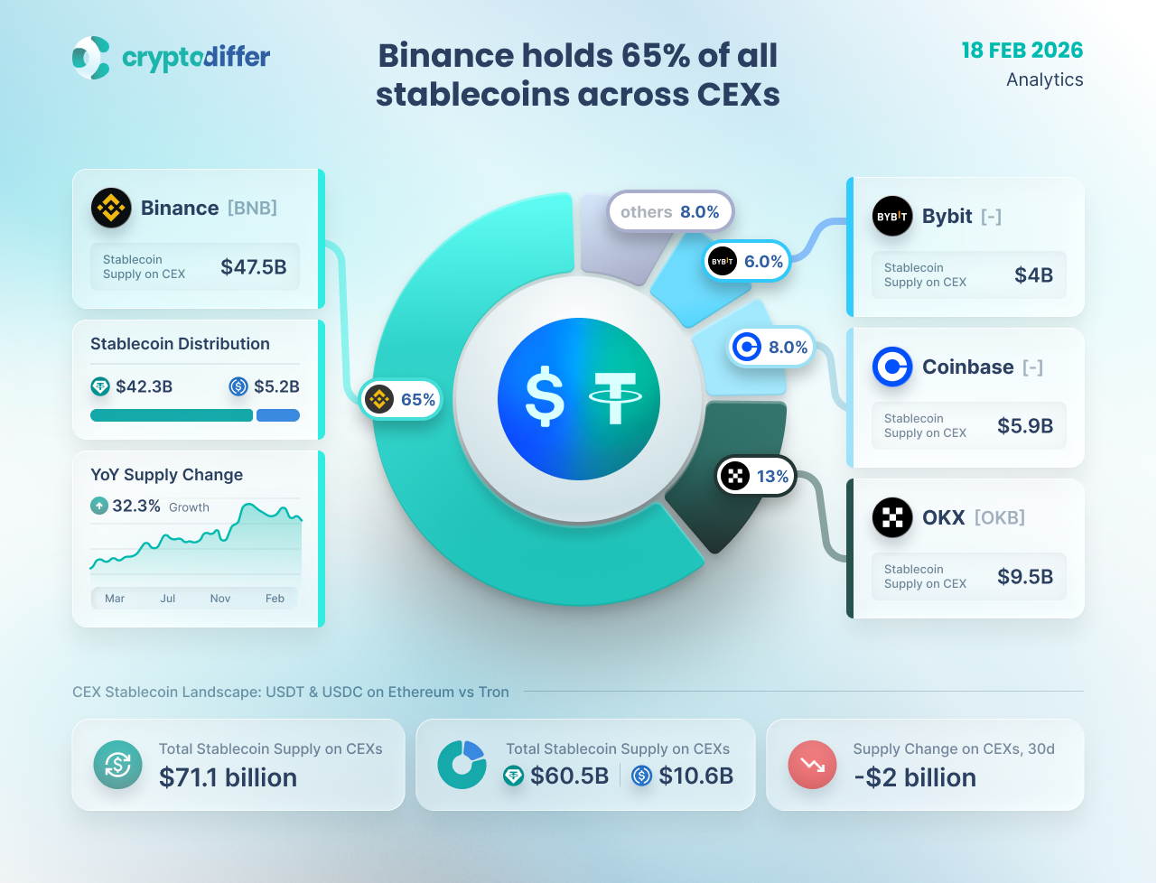 Binance holds 65% of all stablecoins across CEXs