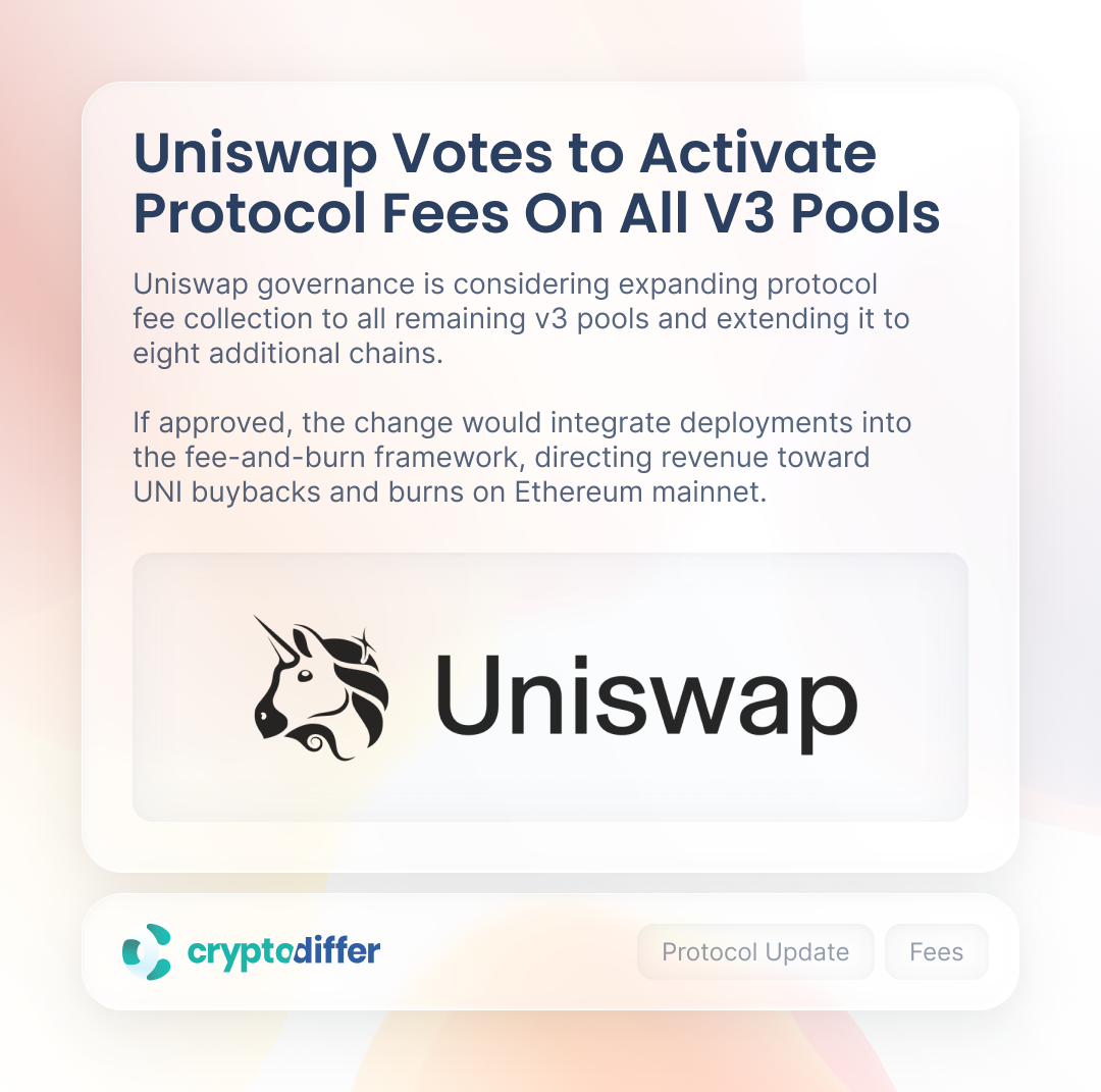 Uniswap governance is considering expanding protocol fee collection to all remaining v3 pools and extending it to eight additional chains.