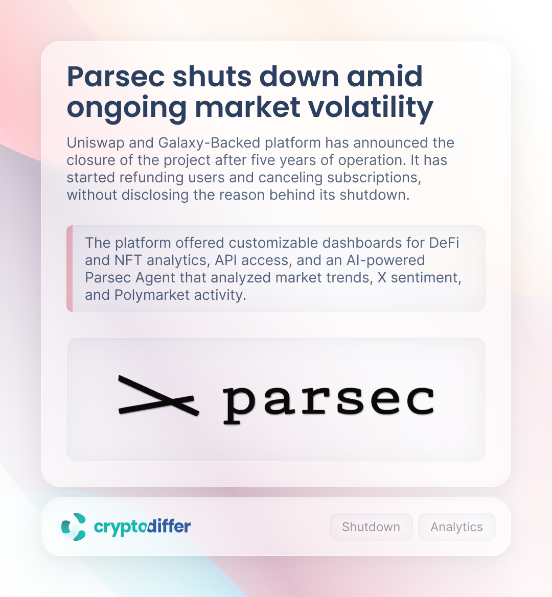 Uniswap and Galaxy-Backed platform has started refunding users and canceling subscriptions, without disclosing the reason behind its shutdown. The platform offered customizable dashboards for DeFi and NFT analytics, API access, and an AI-powered Parsec Agent.