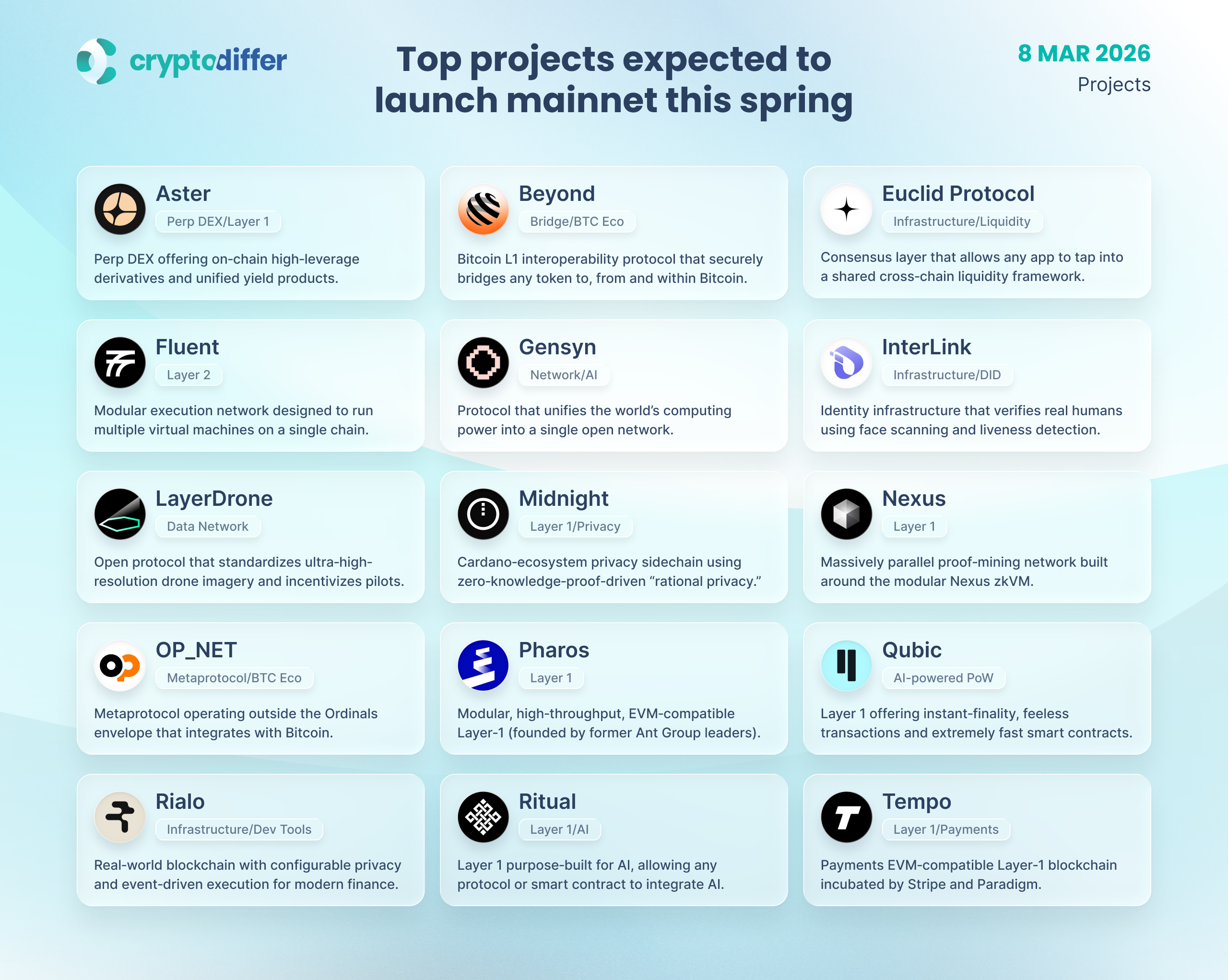 A new cohort of infrastructure projects is approaching mainnet, spanning AI, privacy, payments, and Bitcoin-native ecosystems. If even a few deliver on their promises, this spring could introduce some of the most technically ambitious networks of the cycle.