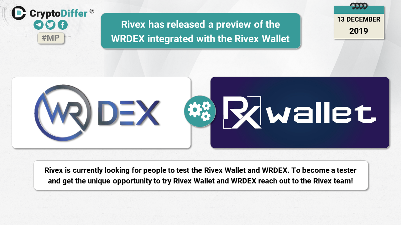 Rivex is currently looking for people to test the Rivex Wallet and WRDEX. To become a tester and get the unique opportunity to try Rivex Wallet and WRDEX reach out to the Rivex team!