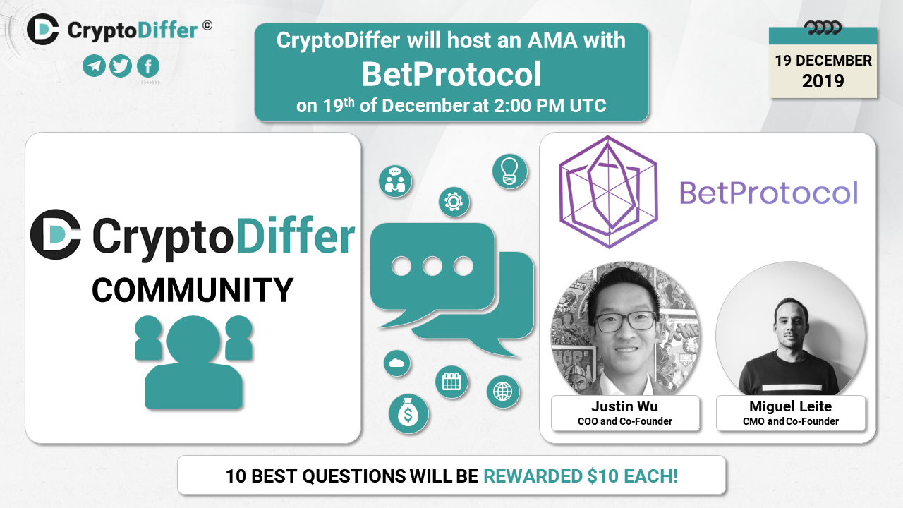 βββοΈDear community, CryptoDiffer will hold an AMA with BetProtocol on the 19th of December at 2:00 PM UTC in the CryptoDiffer Telegram Chat!