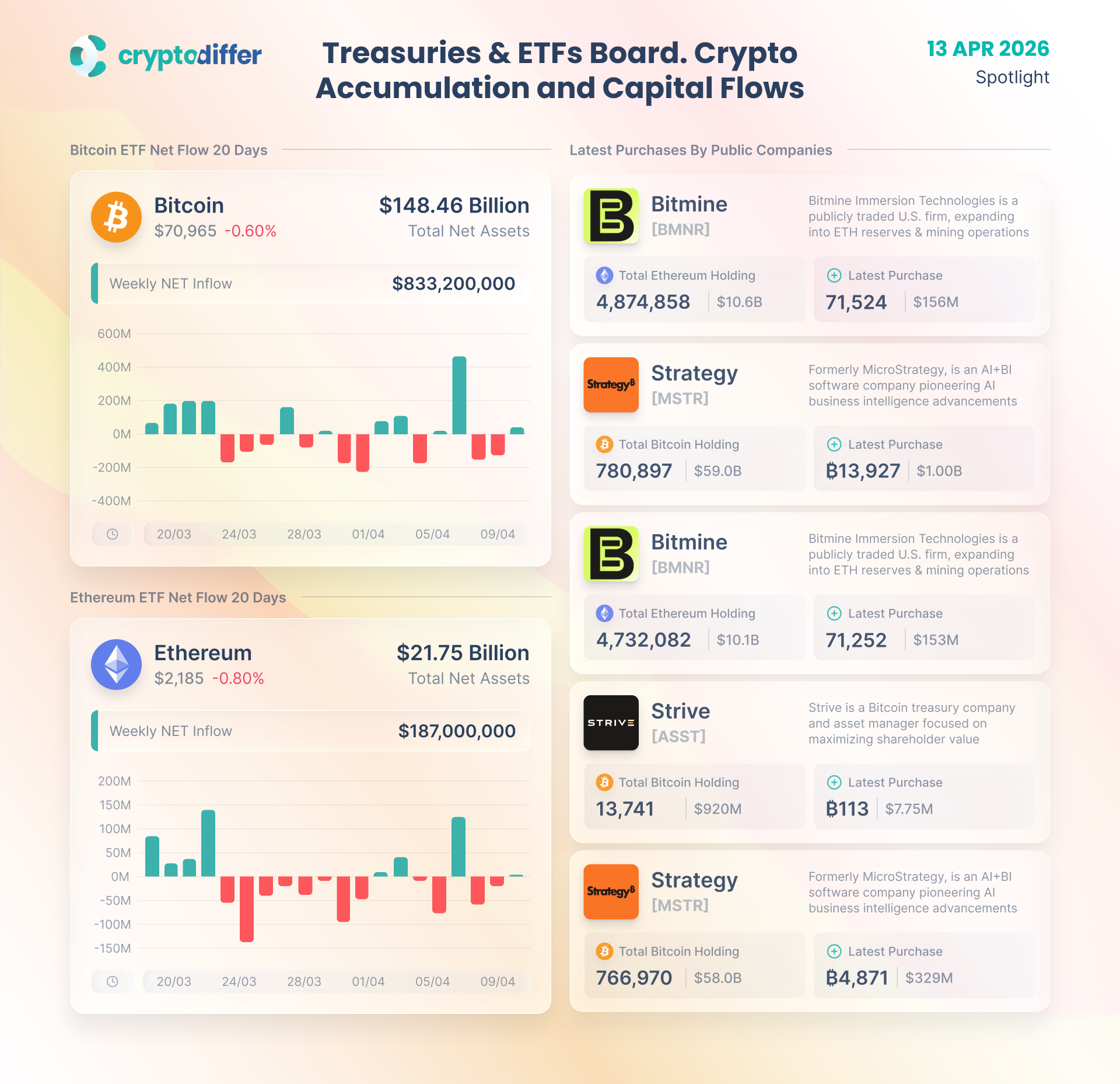 Treasuries & ETFs Board. Crypto Accumulation and Capital Flows