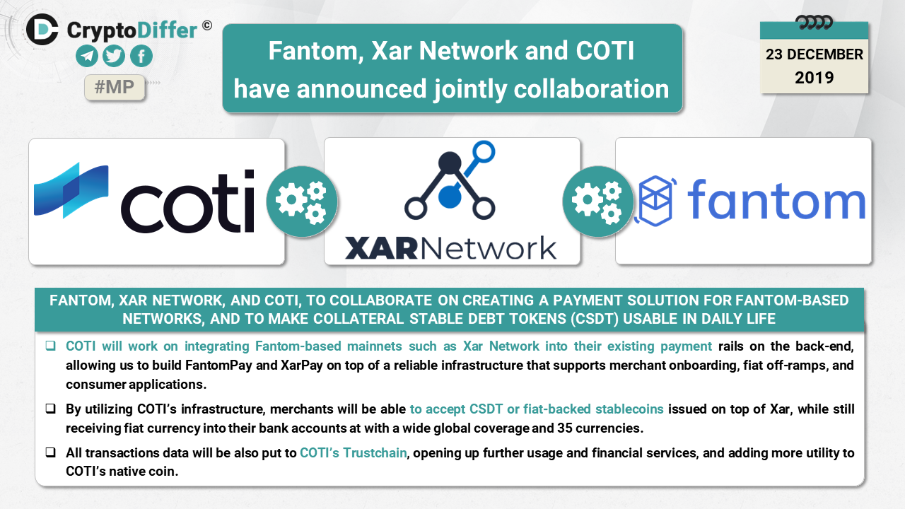 ββFantom, Xar network, and COTI, to collaborate on creating a payment solution for Fantom-based networks, and to make collateral stable debt tokens (CSDT) usable in daily life
