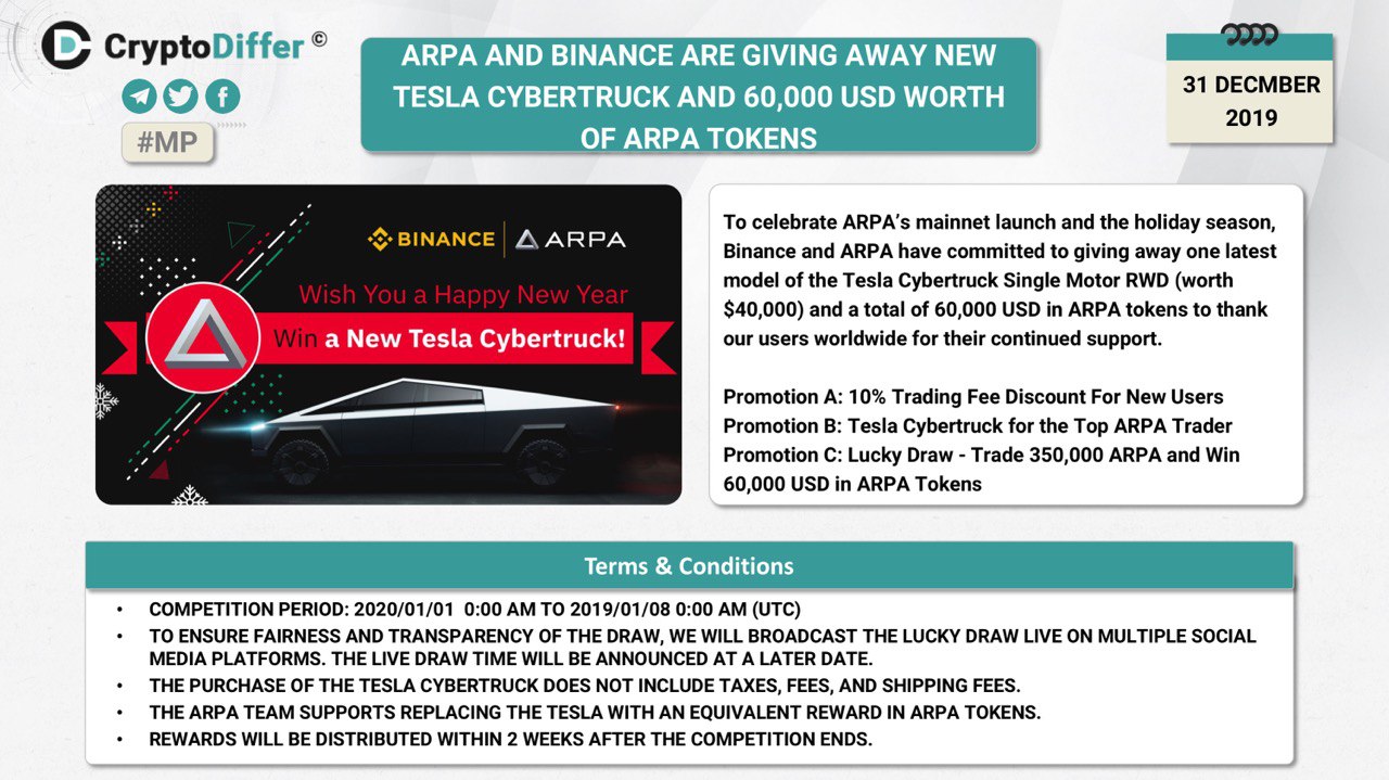 ββARPA AND BINANCE ARE GIVING AWAY NEW TESLA CYBERTRUCK AND 60,000 USD WORTH OF ARPA TOKENS