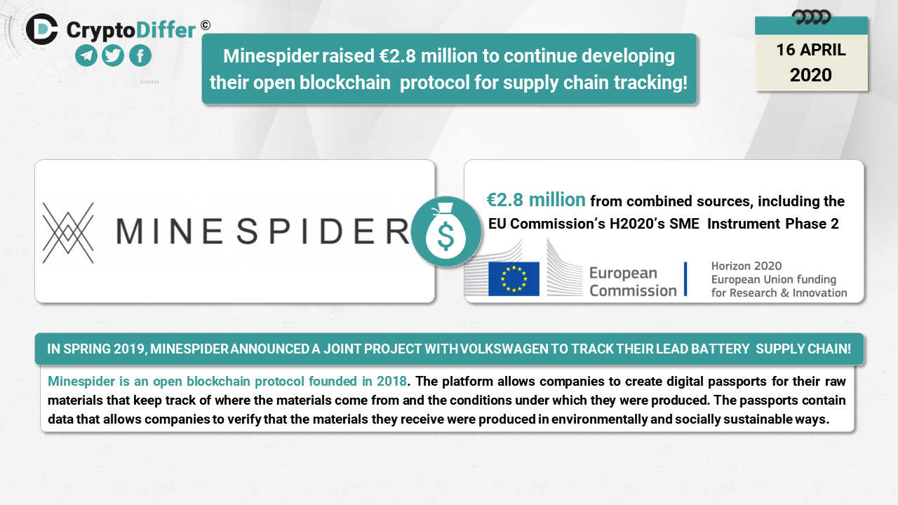 ββMinespider raised β¬2.8 million to continue developing their open blockchain protocol for supply chain tracking!