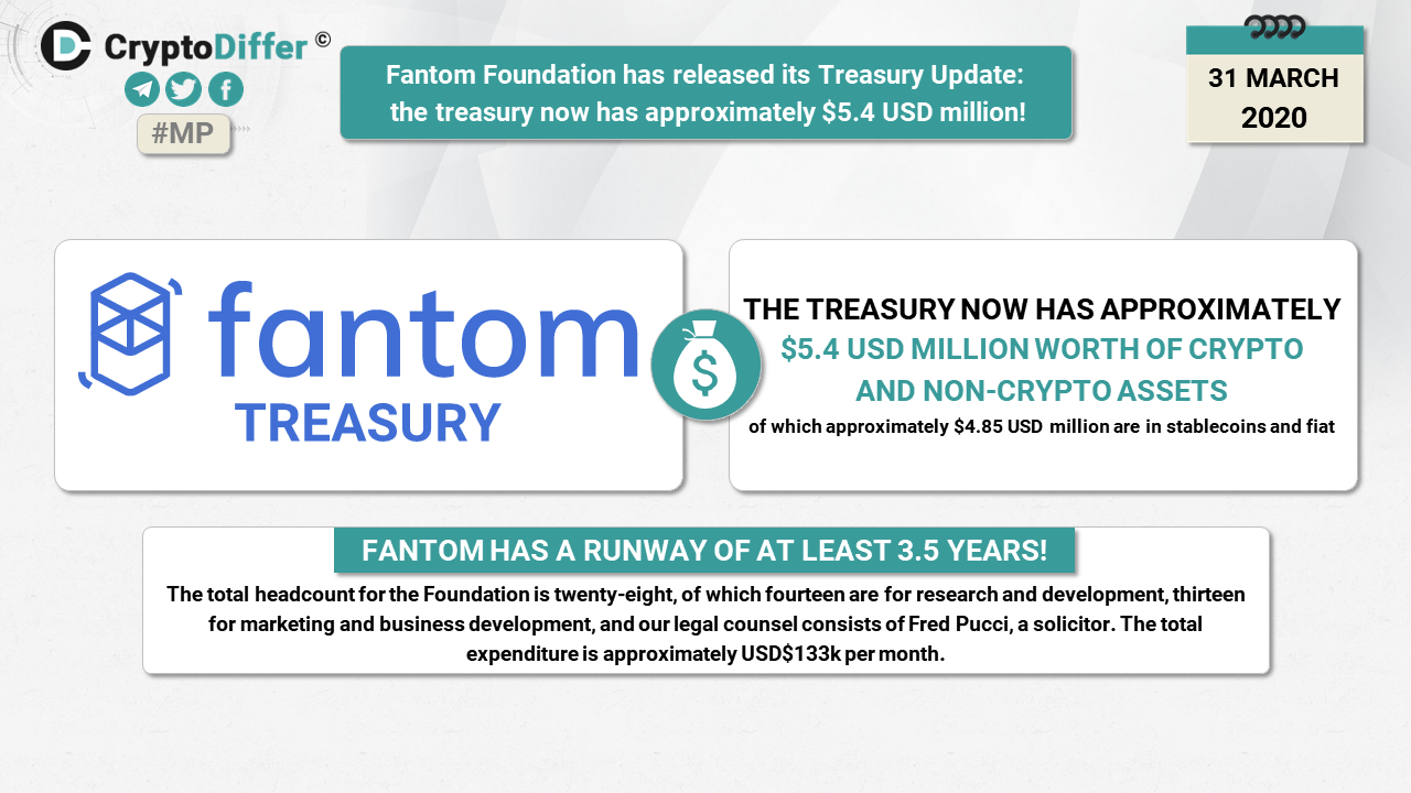 ββFantom Foundation has released its Treasury Update: the treasury now has approximately $5.4 USD million worth of crypto and non-crypto assets, of which approximately USD$4.85million are in stablecoins and fiat!