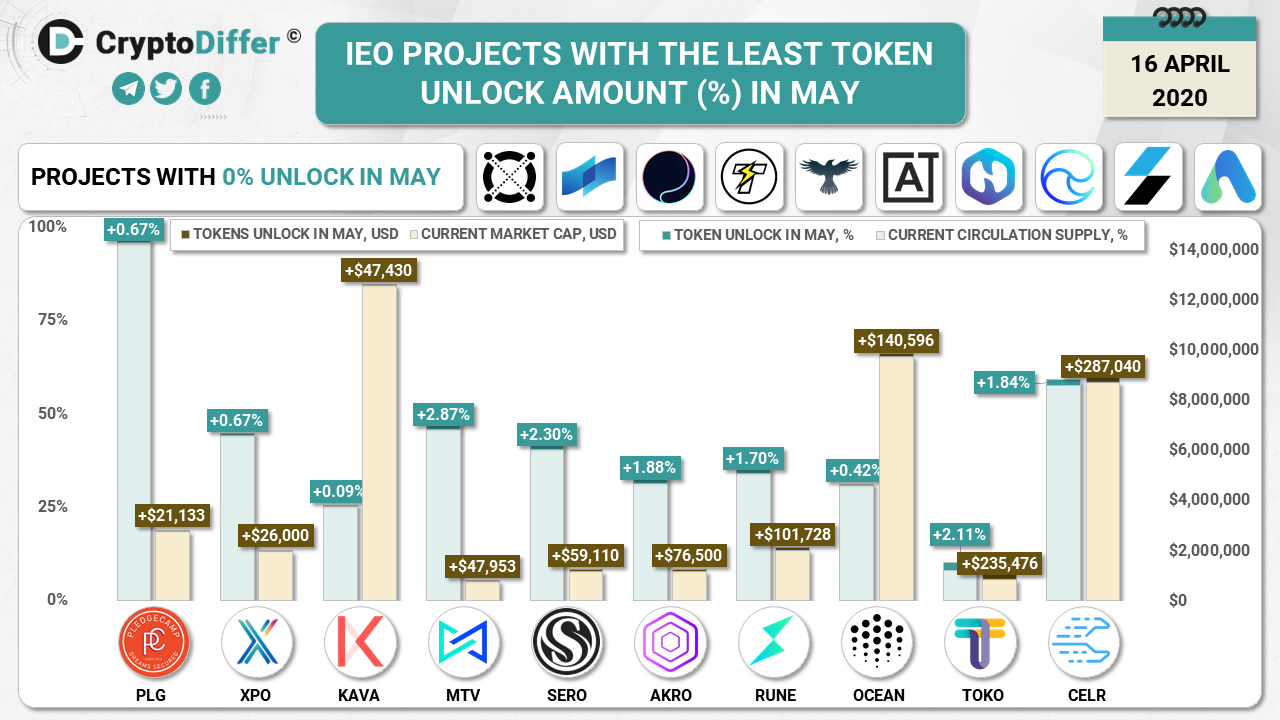 We have chosen ones with the lowest percentage of supply to be unlocked in May 2020. We might miss some projects, so feel free to let us know in our chat or in comments under the twitter post.