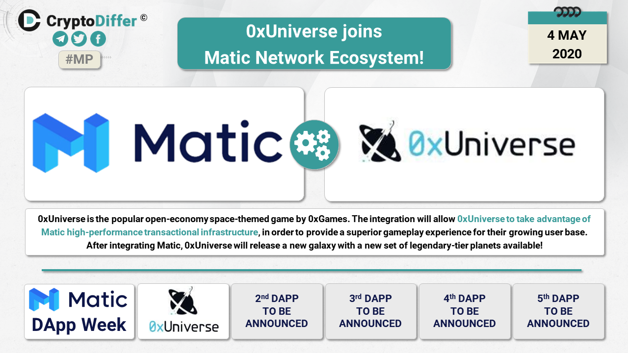 0xUniverse is the popular open-economy space-themed game by 0xGames. The integration will allow 0xUniverse to take advantage of Matic high-performance transactional infrastructure, in order to provide a superior gameplay experience for their growing user base. After integrating Matic, 0xUniverse will release a new galaxy with a new set of legendary-tier planets available!