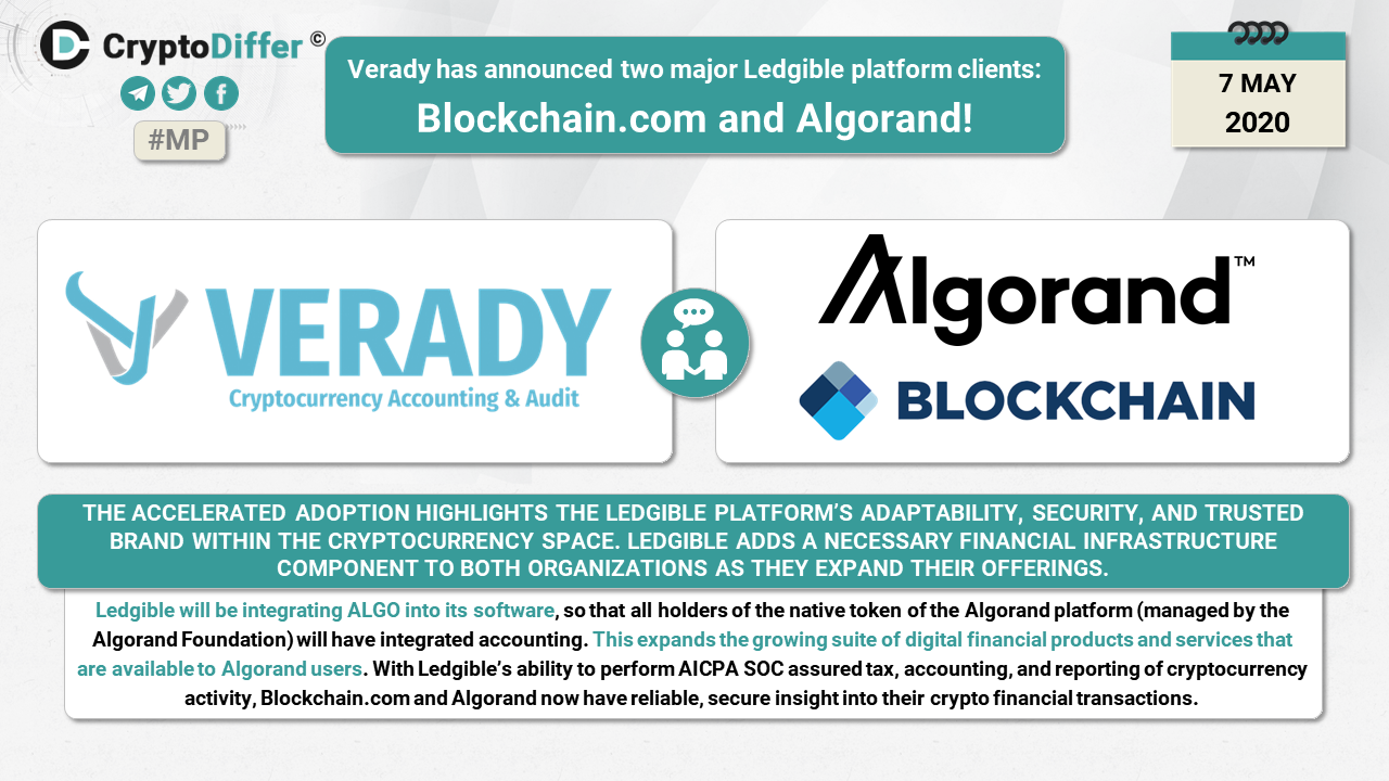 Verady has announced two major Ledgible platform clients: BlockchainCom and Algorand!