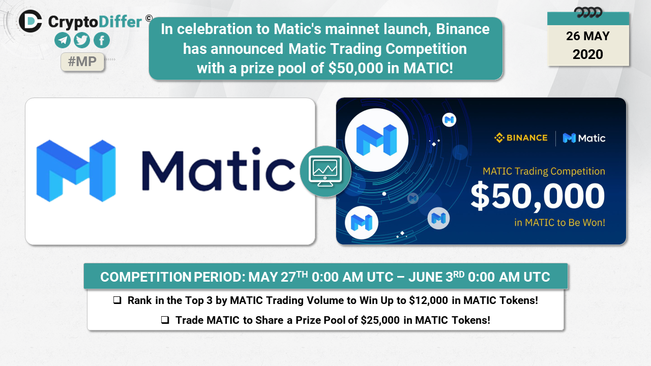 ββIn celebration of Matic's mainnet launch, Binance has announced Matic Trading Competition with a prize pool of $50,000 in MATIC!