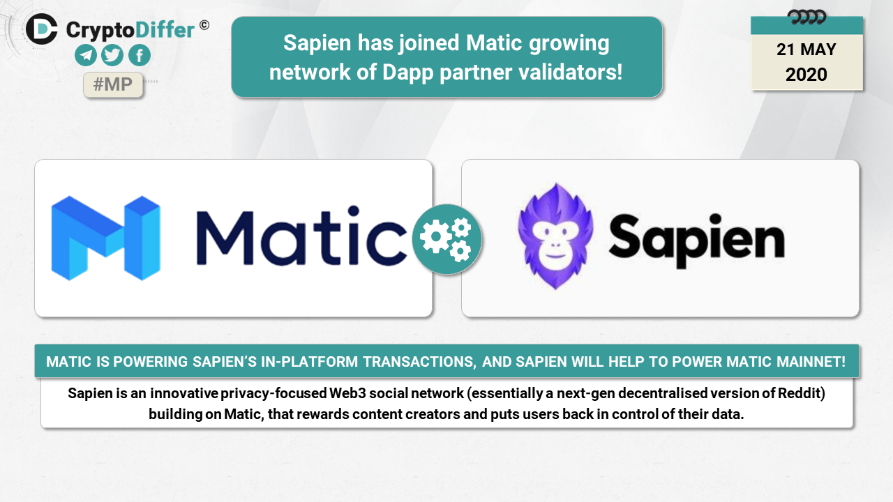 Matic is powering Sapienβs in-platform transactions, and Sapien will help to power Matic mainnet! Sapien is an innovative privacy-focused Web3 social network (essentially a next-gen decentralised version of Reddit) building on Matic, that rewards content creators and puts users back in control of their data.