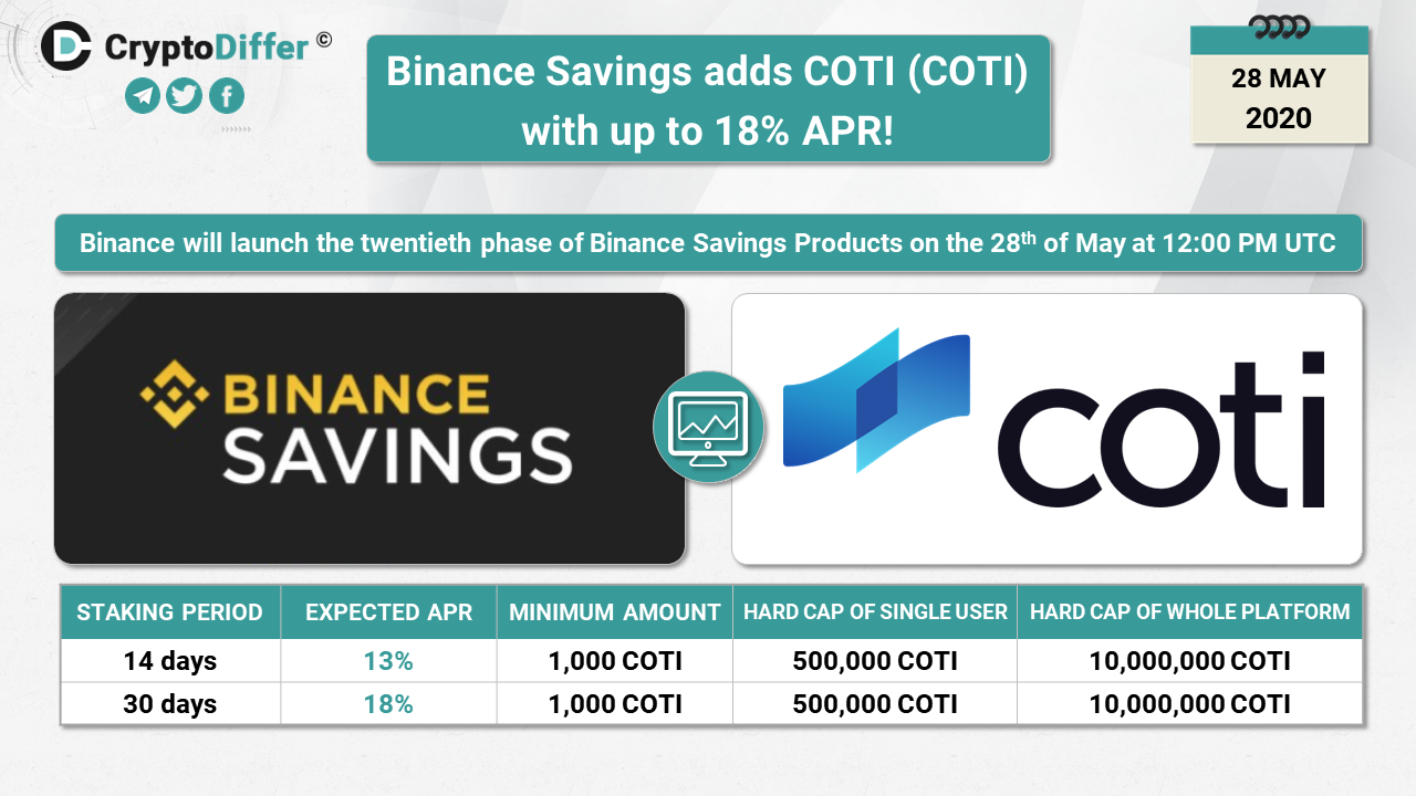 ββBinance Savings adds COTI (COTI) with up to 18% APR!