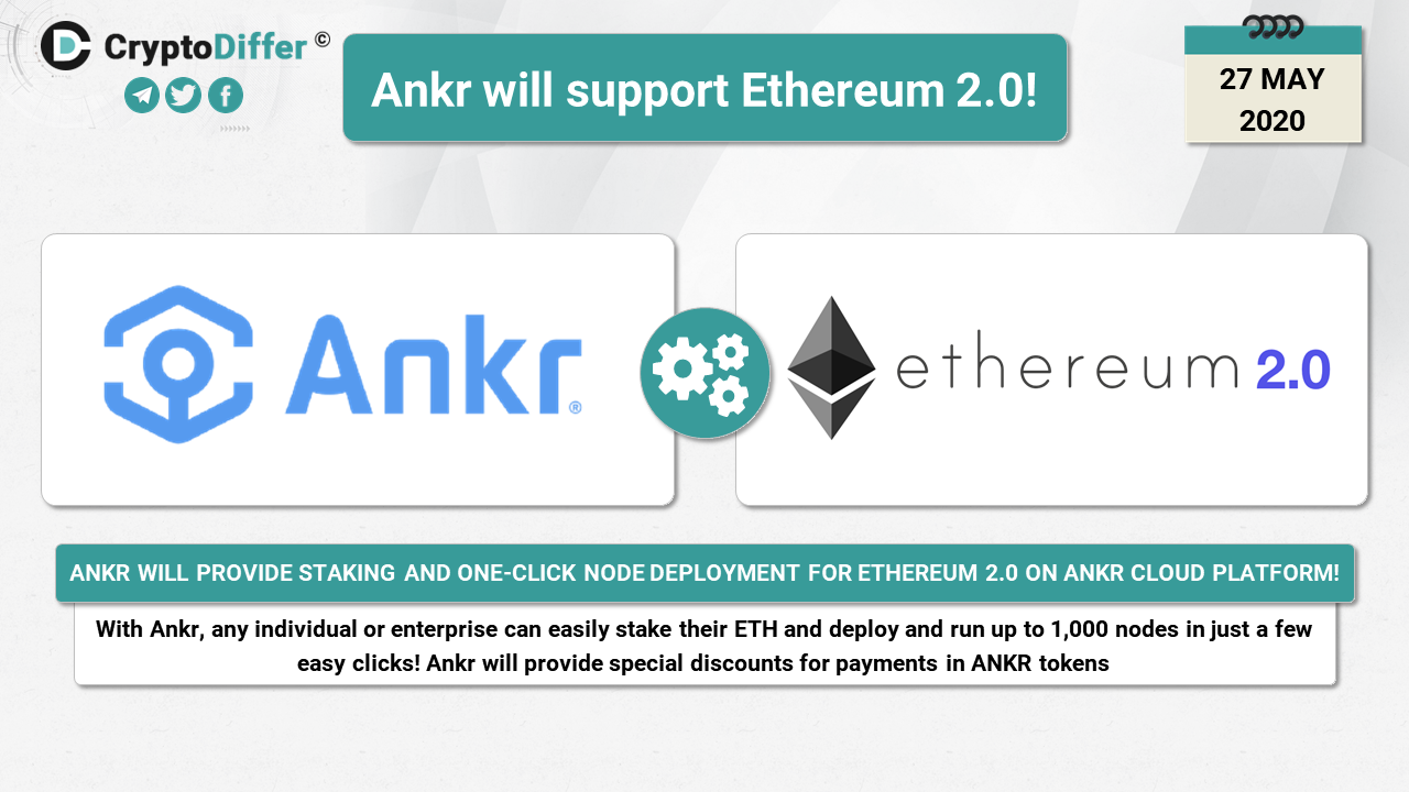 Ankr will provide staking services and one-click node deployment for Ethereum 2.0 on Ankr cloud platform.