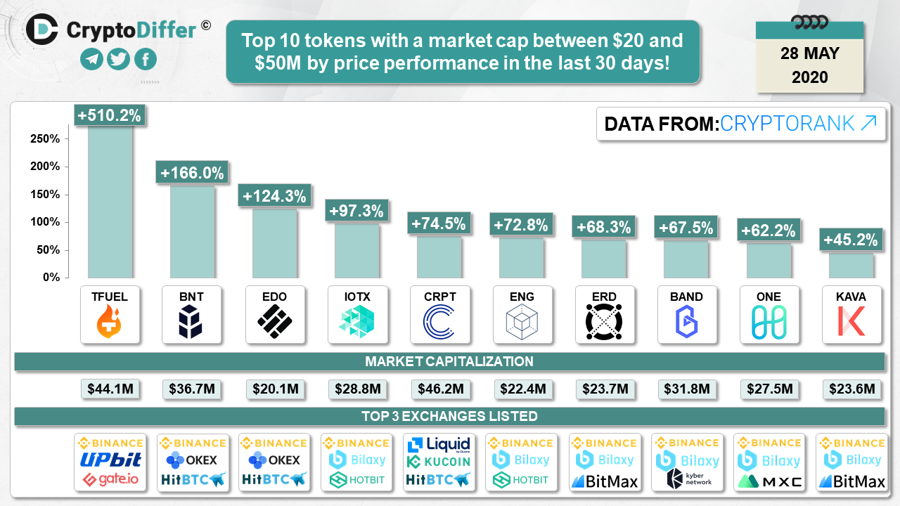 ββTop 10 tokens with a market cap between $20 and $50M by price performance in the last 30 days!