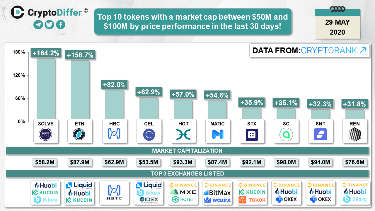 ββTop 10 tokens with a market cap between $50M and $100M by price performance in the last 30 days!