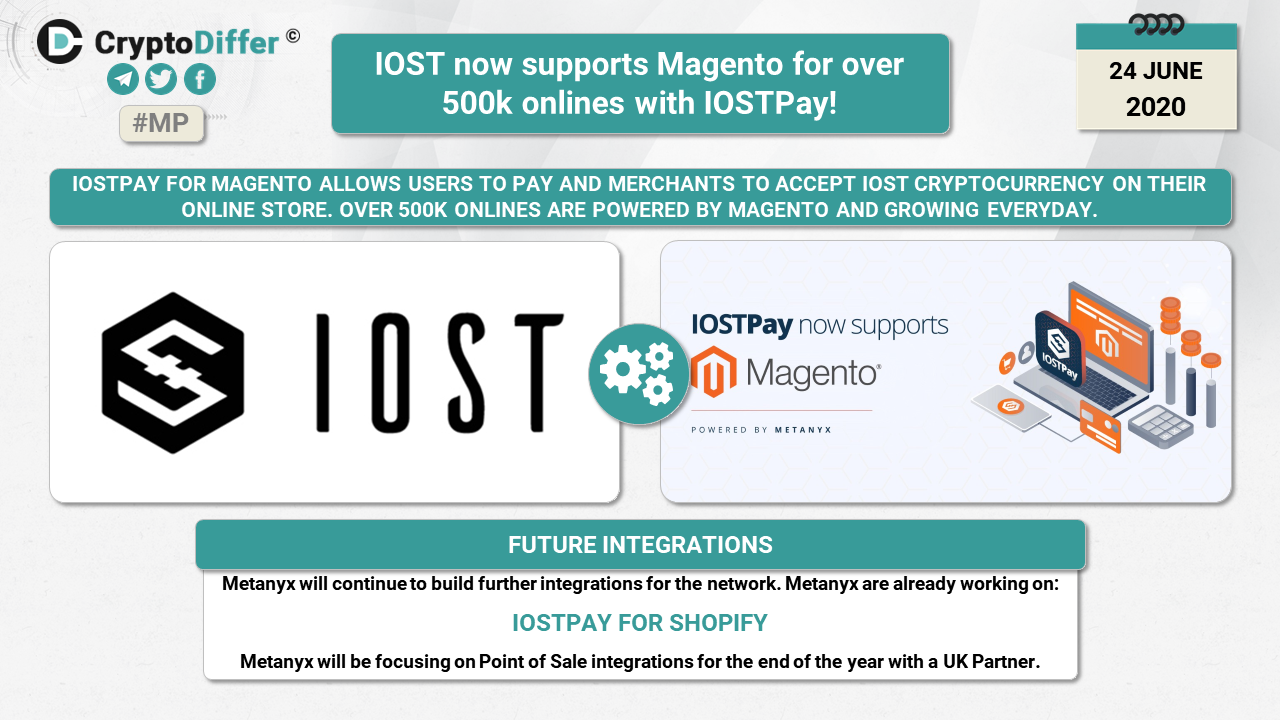 IOSTPay for Magento allows users to pay and merchants to accept IOST CryptoCurrency on their online store. Metanyx will continue to build further integrations for IOST network and is already working on IOSTPay for Shopify!