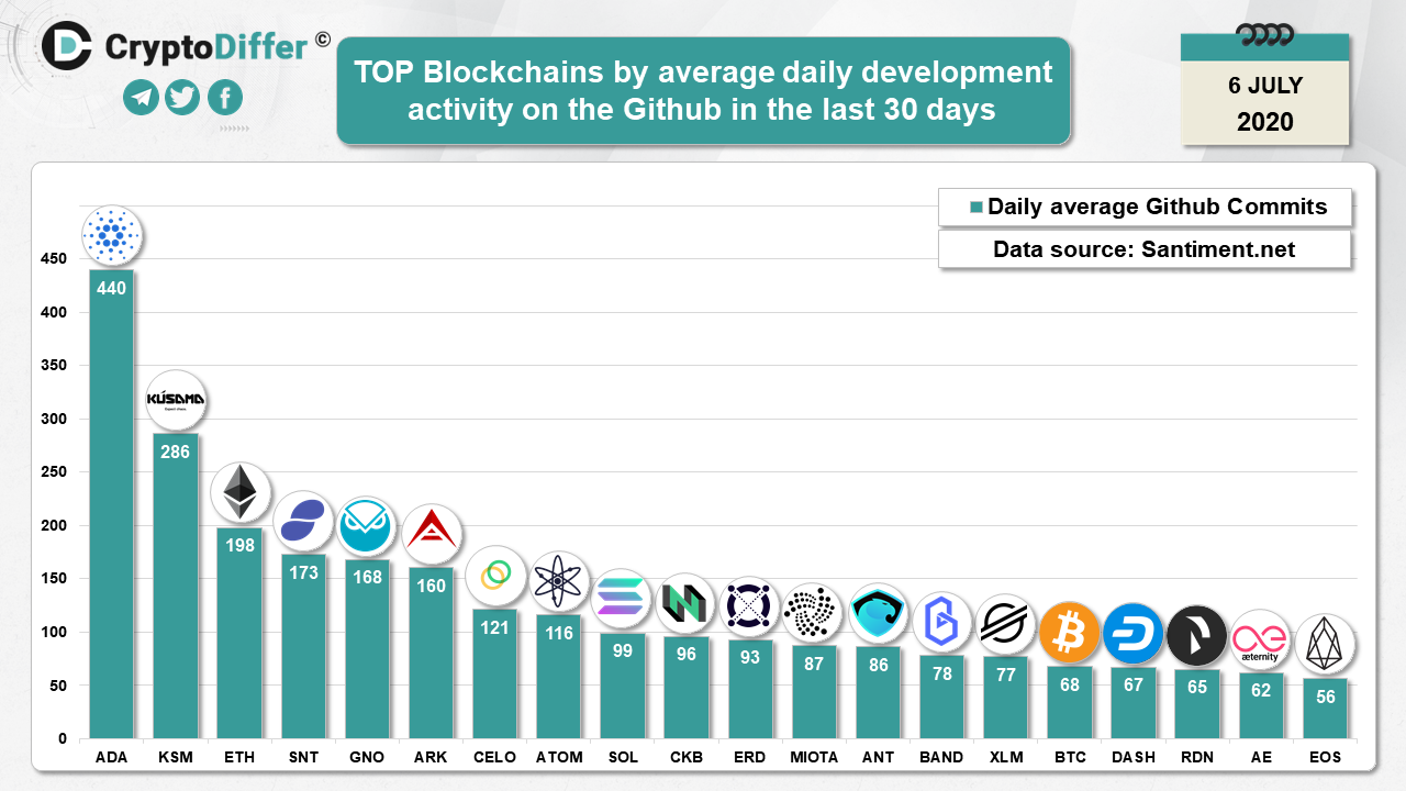 ββTOP Blockchains by average daily development activity on the Github in June - July 2020