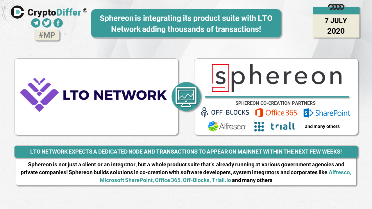 Sphereon is not just a client or an integrator, but a whole product suite thatβs already running at various government agencies and private companies! Sphereon builds solutions in co-creation with software developers, system integrators and corporates like Alfresco, Microsoft SharePoint, Office 365, Off-Blocks, Triall,io and many others. LTO Network expects a dedicated node and transactions to appear on mainnet within the next few weeks!