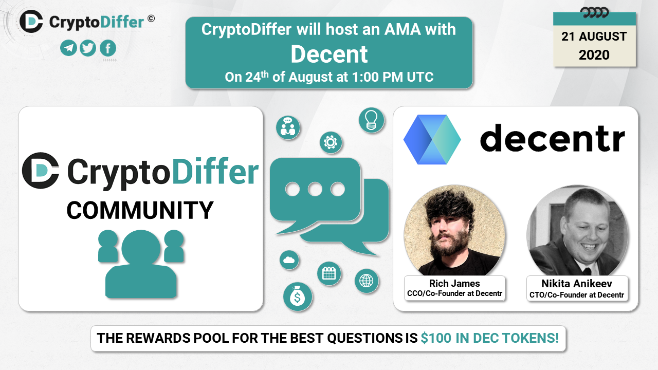 βββοΈDear community, CryptoDiffer will hold an AMA with Decentr on the 24th of August at 1:00 PM UTC in the CryptoDiffer Telegram Chat!
