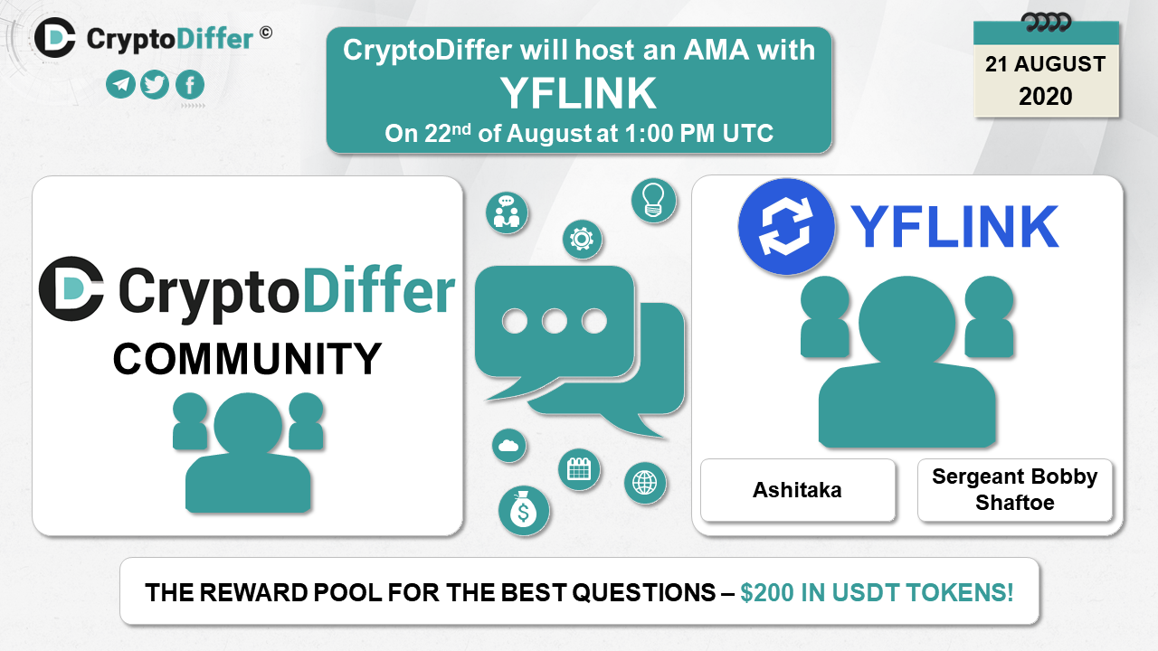 βββοΈDear community, CryptoDiffer will hold an AMA with YFLINK on the 22nd of August at 1:00 PM UTC in the CryptoDiffer Telegram Chat!