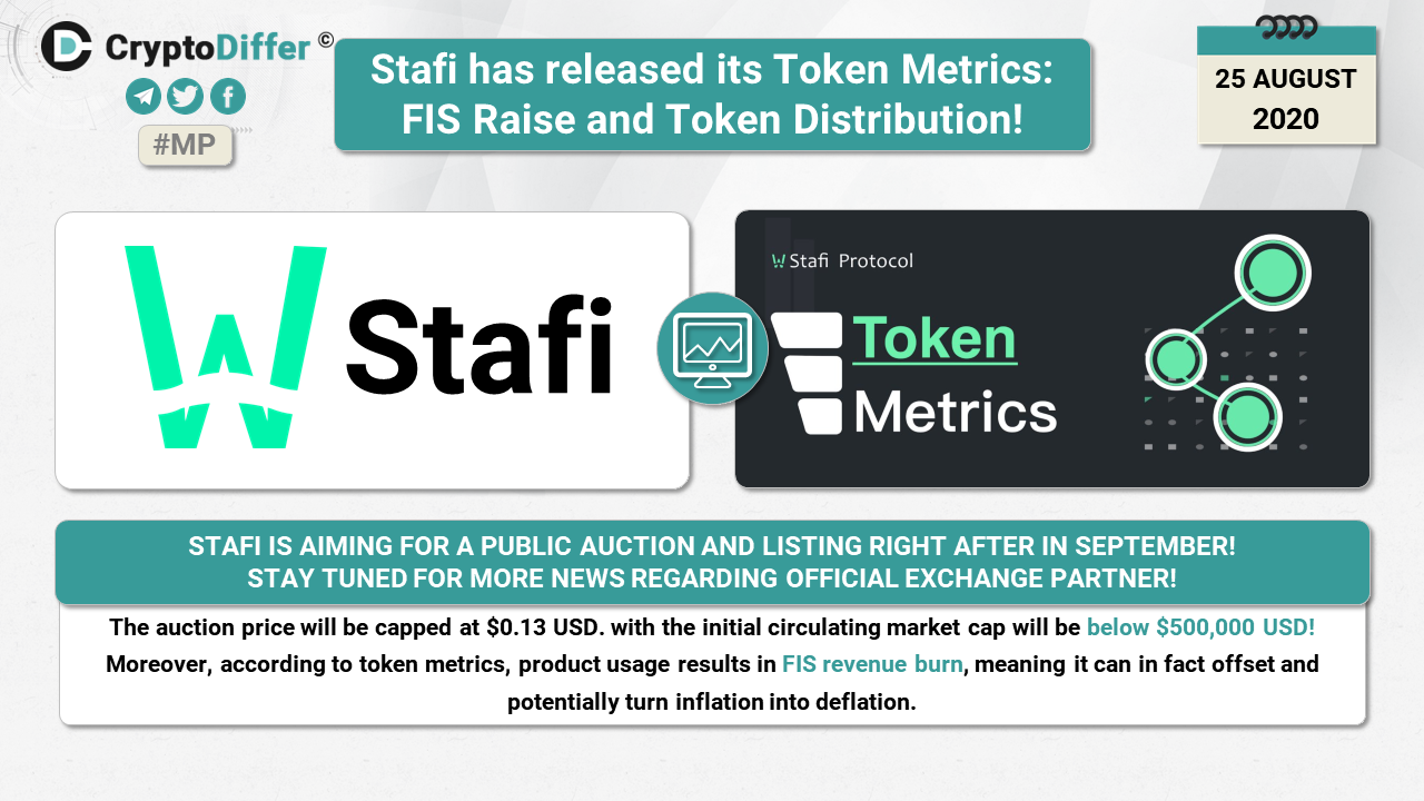 Stafi is aiming for a public auction and listing right after in September, stay tuned for more news regarding official exchange partner! The auction price will be capped at $0.13. with the initial circulating market cap will be below 500K USD at the start. Moreover, according to token metrics, product usage results in FIS revenue burn, meaning it can in fact offset and potentially turn inflation into deflation.