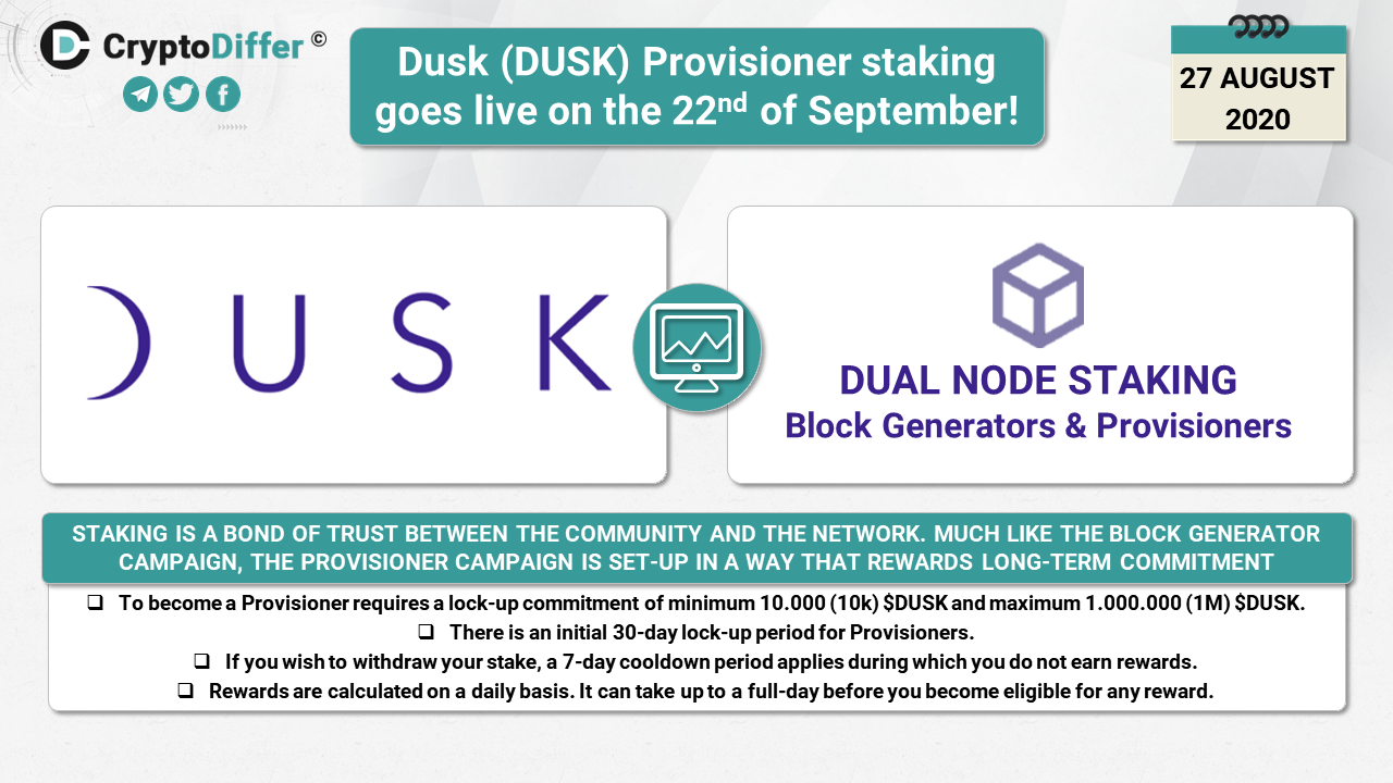 ββDusk (DUSK) Provisioner staking goes live on the 22nd of September!