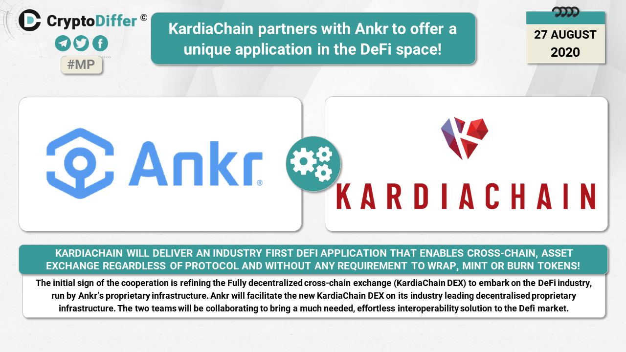 KardiaChain will deliver an industry first DeFi application that enables cross-chain, asset exchange regardless of protocol and without any requirement to wrap, mint or burn tokens. The initial sign of the cooperation is refining the Fully decentralized cross-chain exchange (KardiaChain DEX) to embark on the DeFi industry, run by Ankrβs proprietary infrastructure.