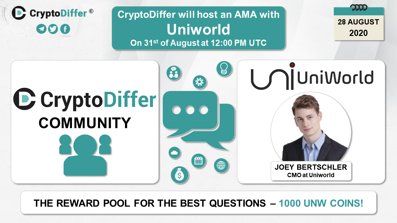 βββοΈDear community, CryptoDiffer will hold an AMA with UniWorld on the 31st of August at 12:00 PM UTC in the CryptoDiffer Telegram Chat!