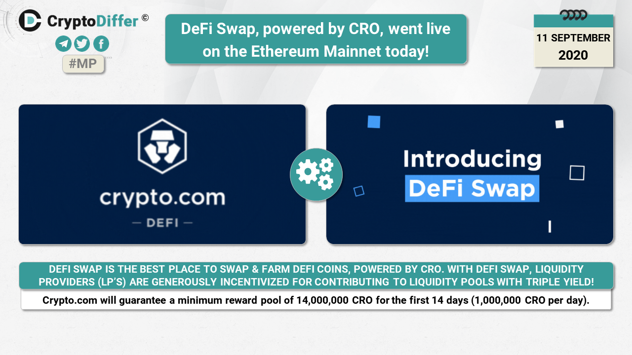 โโDeFi Swap, powered by CRO, went live on the Ethereum Mainnet today!