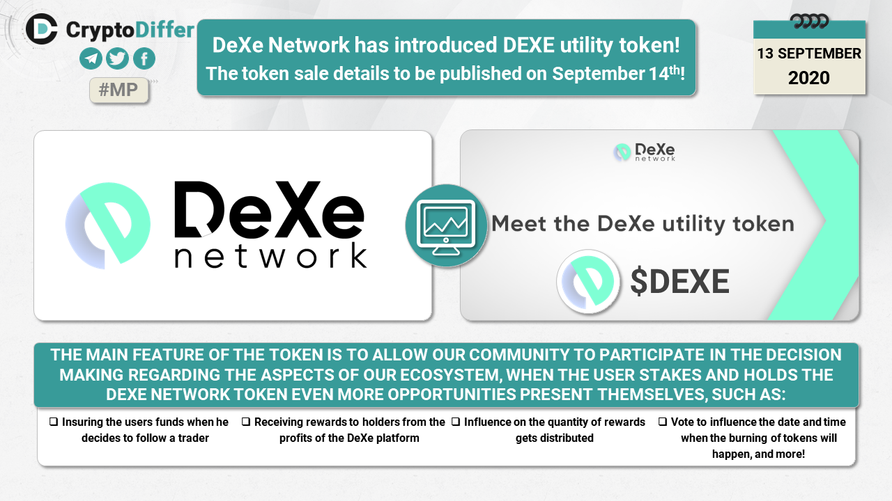 ββ@DeXe_Network has introduced DEXE utility token! The token sale details to be published tomorrow, on September 14th!