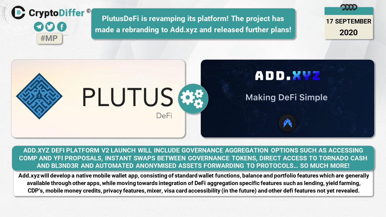 ββPlutusDeFi is revamping its platform! The project has made a rebranding to ADD.xyz and released further plans!