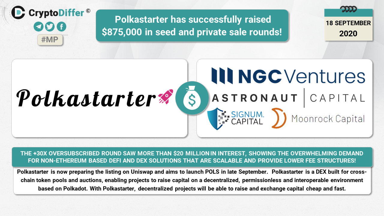 👉 https://medium.com/@polkastarter/announcing-polkastarter-raise-of-875-000-to-launch-polkadot-based-dex-for-cross-chain-token-pools-e6f17feb798a
