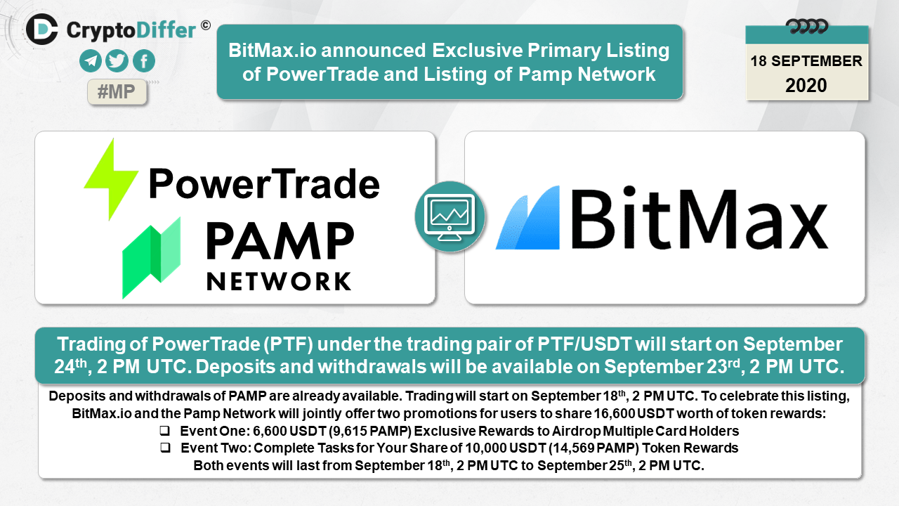 BitMax.io announced Exclusive Primary Listing of PowerTrade and Listing of Pamp Network