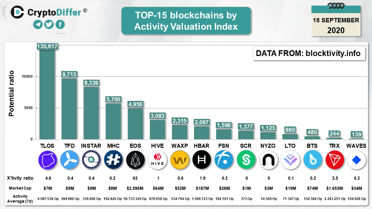 TOP 15 Blockchain platforms by Activity Valuation Index
