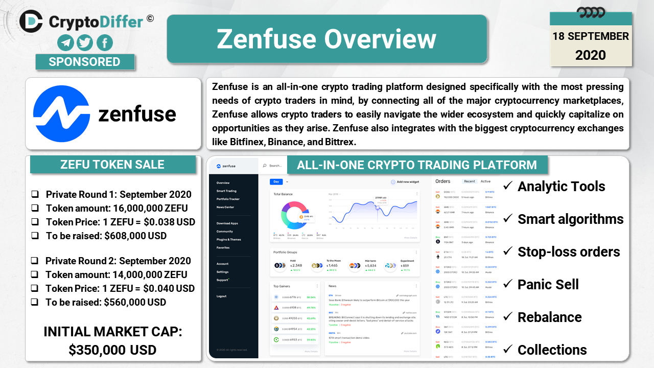 Zenfuse is an all-in-one crypto trading platform designed specifically with the most pressing needs of crypto traders in mind, by connecting all of the major cryptocurrency marketplaces, Zenfuse allows crypto traders to easily navigate the wider ecosystem and quickly capitalize on opportunities as they arise.