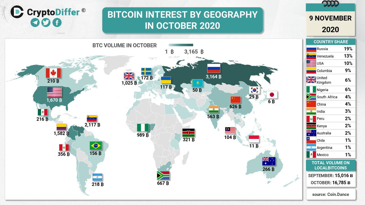 We took a look at the Bitcoin trading volume by countries on LocalBitcoins in October.