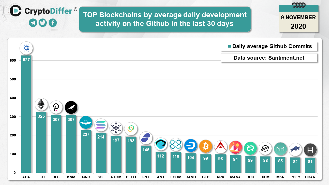 โโTOP Blockchains by average daily development activity on the Github in October - November 2020