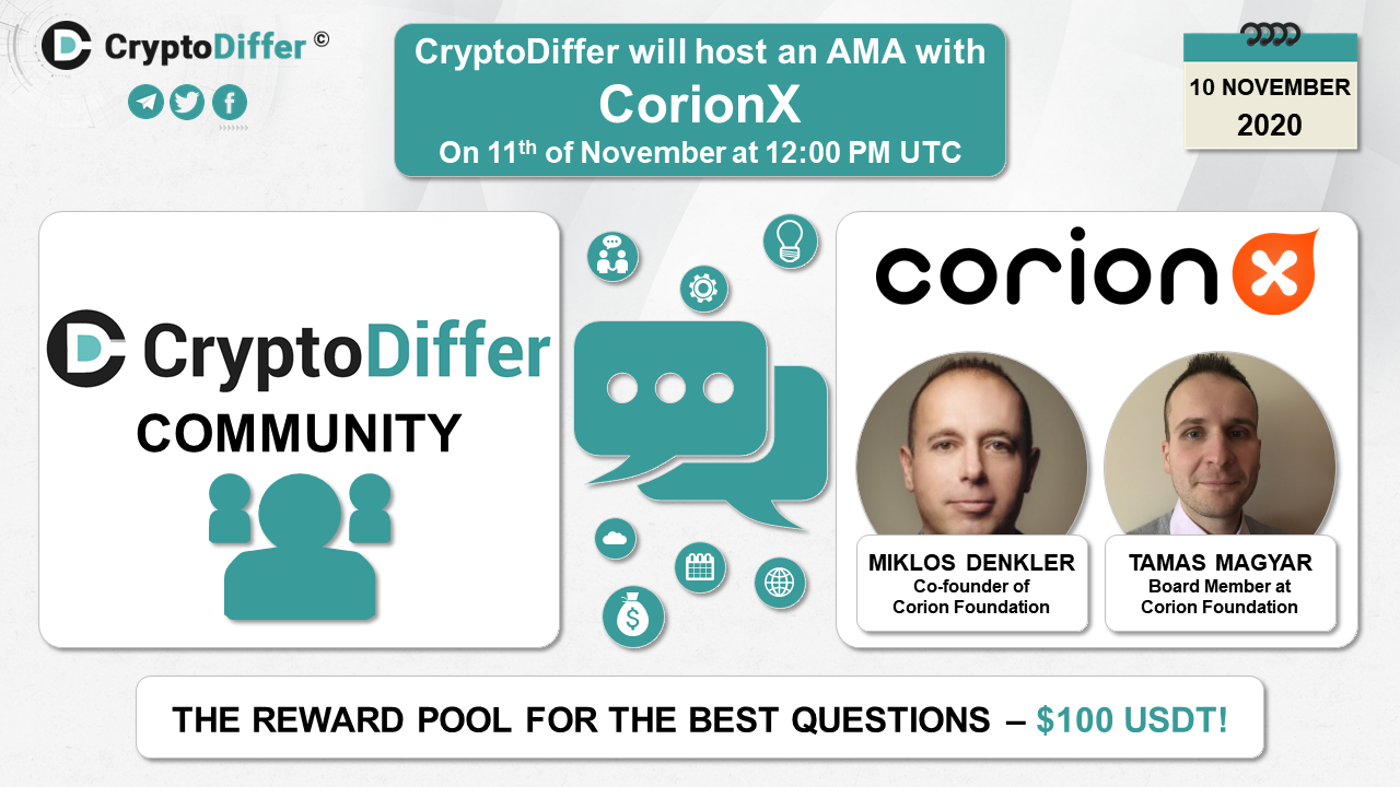โโโ๏ธDear community, CryptoDiffer will hold an AMA with CorionX on the 11th of November at 12:00 PM UTC in the CryptoDiffer Telegram Chat!