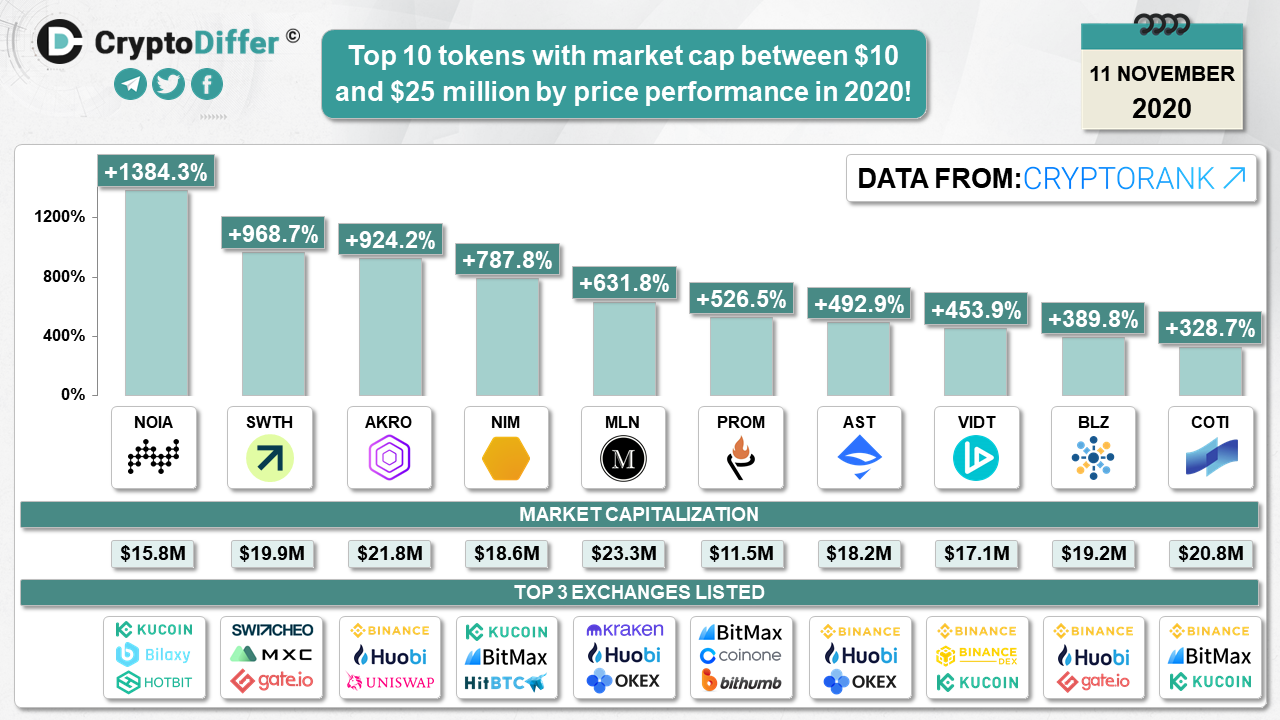 ββTop 10 tokens with market cap between $10 and $25 million by price performance in 2020!
